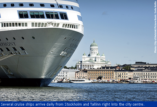 An alternative route to Helsinki is by sea. Several cruise ships arrive each